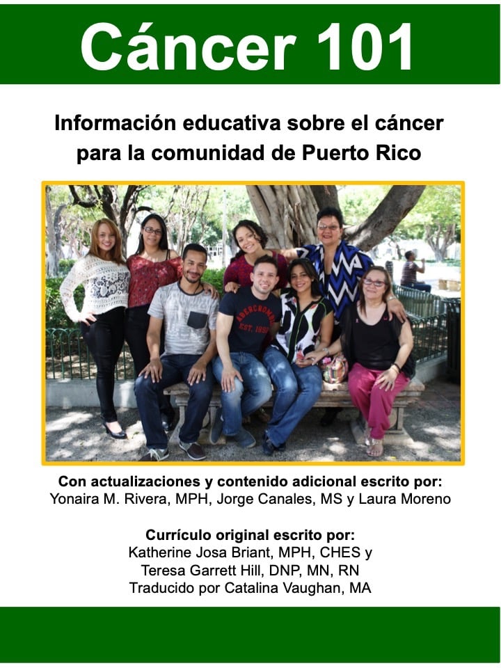 This curriculum was culturally adapted to educate Puerto Rican communities about cancer. It was funded by a supplemental grant from the National Cancer Institute (3U54CA153509-04S1) through the Ponce Health Sciences University-Moffitt Cancer Center Partnership.
